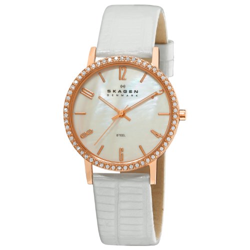 Buy Now! Skagen Women's 922SRLW8A Steel Mother-Of-Pearl Dial Rose Goldtone Bezel Watch